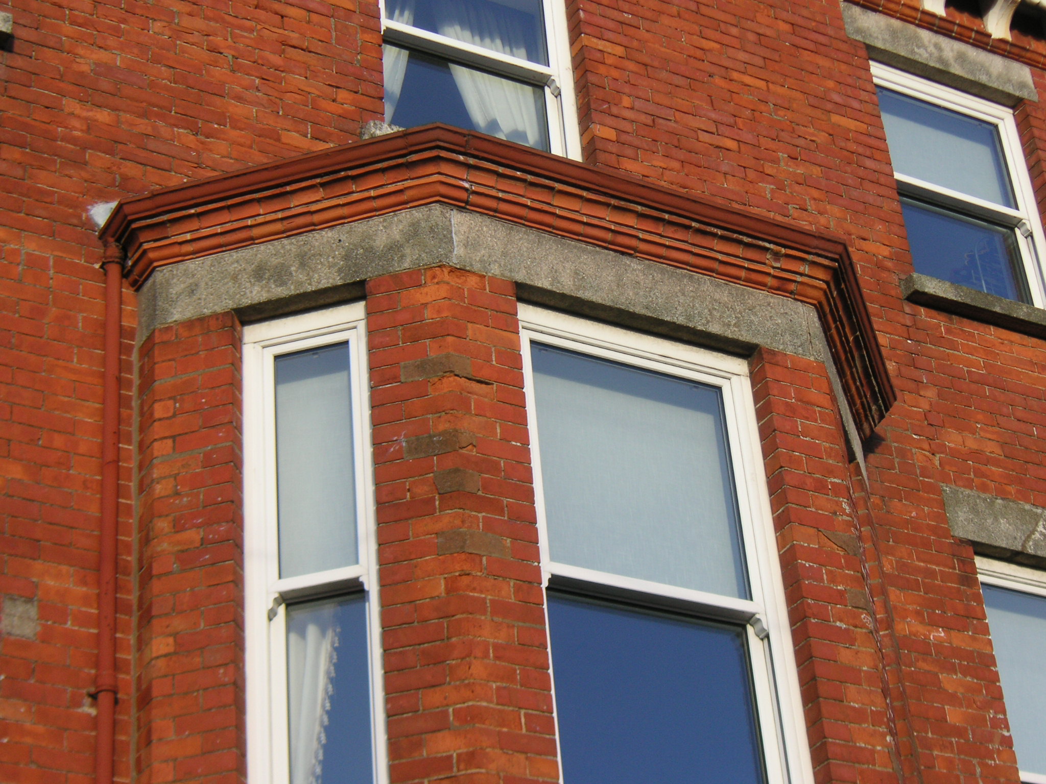 Spalling of brick and inadequate cement repairs at Spawell Road, Wexford. Luckily the brick cornice survives!